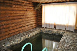 Наиболее подходящим местом для возведения бани является участок на заднем дворе. Дополнительно его можно отгородить перголами с вьющимися растениями и добавить небольшой фонтан или бассейн. Такое дополнение будет особенно полезным после выхода из парилки.