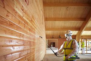 Антисептики рекомендуется наносить только на новую древесину перед началом эксплуатации бани или парилки. Старую поверхность необходимо очищать от покрытия (краска, лак), а также от загрязнений и пыли. После этого с помощью мягкой широкой кисти либо валика наносят состав. Когда все полностью высохнет, можно пользоваться баней.