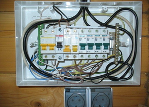 Установку основных элементов системы электропитания, включающей электрощиток, коробку распределения тока, центральный переключатель, можно проводить только в предбаннике.