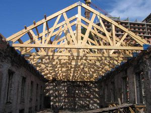 Эти компоненты нужны для монтирования крыши, они объединяются в одну целую конструкцию, которая служит основой стропильной системы для двускатной крыши. Для работы используется не только дерево, но и материал из железа, железобетонные конструкции.