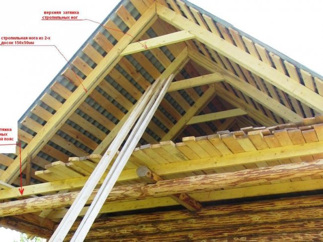 Итак, вы прикрепили брус к стенам дома, теперь выбираем наиболее оптимальный размер стропильных ног. Его сечение будет соответствовать выбранному расстоянию между ногами. Чтобы не ошибиться, лучше использовать таблицу. Она позволит правильно рассчитать сечение стропильных ног, которое будет зависеть от длины конструкции. Иногда при строительстве стропильной системы длина материалов оказывается недостаточной, тогда его наращивают путём соединения, используя для этого необходимые крепежные элементы.