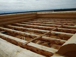Конструкция из лагового бруса делается только после того, как возведены стены. Доски укладываются на лаги после проведения малярных и штукатурных работ.