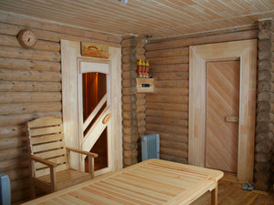В деревянной бане и комната отдыха должна быть с деревянной отделкой.