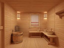 Основы «банного» интерьера Бани все больше приобретают популярность в настоящее время. Издревле считалось, что баня — это место очищения тела и отдыха человека. Ароматный запах дерева, горячий пар, идущий из парилки, массаж вениками…Все это создает удивительную атмосферу релаксации и расслабляет человека. После обжигающей дыхание парной и ныряния в ледяную воду хочется расслабиться с кружкой кваса, пива или чашкой ароматного травяного чая в комнате отдыха. Хочется пообщаться на различные темы с друзьями или членами семьи. Именно поэтому комната отдыха в бане – атрибут более чем важный, поскольку именно здесь создаётся особая обстановка, благоприятствующая приятному времяпрепровождению после всех водно-оздоровительных процедур. Еще на этапе проектирования необходимо обозначить, где будет располагаться комната отдыха, какой будет её площадь. Необходимо также определиться с отделочными материалами, которые будут хорошо переносить влажность, мебелью, дизайном интерьера этого помещения. Нужно учесть, что парилку и комнату отдыха должна разделать хорошая тепло- и гидроизоляция, чтобы через несколько месяцев использования все не развалилось и не покрылось грибком. Цветовая палитра Дизайн комнаты отдыха в бане предусматривает использование особенной палитры цветов. Это должны быть мягкие, пастельные, расслабляющие, расплывчатые цветовые оттенки, которые не раздражают зрение. Лучше всего использовать светло-желтые, персиковые, бледно-коричневые, солнечно-оранжевые цвета, с помощью которых можно придать атмосфере комнаты отдыха эффект пребывания в теплом уютном гнездышке. Мебель для такого интерьера нужна не современная, а «под старину», в винтажном или деревенском стиле. Можно выбрать более яркие цветовые решения и создать в комнате отдыха бани современный интерьер. В этом случае она будет больше похожа на гостиную в загородном коттедже. Но нынешняя молодежь оценит именно такой дизайн по заслугам, так как в бане с такой комнатой отдыха можно собираться большой компанией и отдыхать, совмещая приятное с полезным. Также при обустройстве комнаты отдыха в бане следует учесть такой момент, как функциональное расположение всех помещений — парилки, предбанника, бассейна, душевой, туалета. Это нужно для того, чтобы выйдя из парилки можно было легко попасть в отделение с бассейном или в курилку (увы, но курильщиков среди нас много). Отделочные материалы В качестве отделочного материала интерьеров русской бани идеальным признается натуральное дерево. Самый простой вариант – облицевать стены в комнате отдыха вагонкой или декоративными деревянными панелями. Так интерьер бани приобретет истинно русский дух, а атмосфера будет по-домашнему уютной, располагающей к спокойному отдыху. Лучшим вариантом для возведения бани считается древесина хвойных пород. Такой вид материала выбирают из-за устойчивости хвойных пород к влаге и долгого срока службы. Но поскольку подобная древесина имеет свойство выделять смолы, для внутренних отделочных работ она малопригодны. Для облицовки стен комнаты больше подойдут дуб, осина, береза, липа или клен. Они великолепно смотрятся в интерьере и оказывают целебное воздействие на организм человека. Если же вы не стремитесь добиться в интерьере традиционной русской бани эффекта старины, для отд