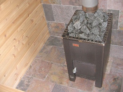 Чтобы при установке соблюсти меры пожарной безопасности, необходимо позаботиться об отступе, который делается между печью и стеной баней. Его обязательно обшивают несгораемым материалом. Этот же материал используется для обшивки перегородки, которая разделяет парную и часть печи. Конструкция самодельных печей обычно комбинированная: