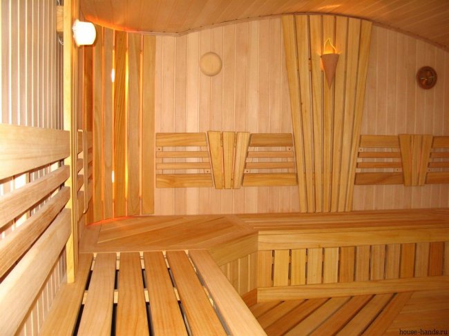 Отделка деревянной бани Баней сейчас вряд ли кого-нибудь можно удивить, так как любителей ее предостаточно. Связано это, скорее всего, с напряженным темпом жизни, который время от времени, требует расслабления и восстановления потраченных сил, чтобы двигаться вперед. Гигиеническая составляющая этого заведения уже отошла на задний план, это уже не рутинное смывание грязи, а ритуал. Потому иного подхода стала требовать отделка деревянной бани. Каждое помещение этого заведения должно быть использовано с пользой, быть эргономичным, хорошо прогретым, экономичным в обслуживании, красивым и уютным. Кроме традиционных парной, моечной и комнаты отдыха, в банях сейчас устраивают бассейны или купели, тренажерные залы, бильярдные, массажные комнаты, спортивные уголки. В таком случае общий объем бани получается довольно большим, но, гораздо проще, отделку делать комплексно, привлечь к этой работе дизайнеров, составить проект и смету, выбрать материалы. Однако, выйдет это недешево, поэтому чаще отделкой бани занимаются сами владельцы, это не очень трудно, тем более, если сооружение небольшое. Оформление парилки Как правило, основная масса частных бань, особенно в глубинке, сочетают в себе моечное отделение и парильное. Иногда их отделяет от раздевалки только полог, в ней находится тамбур, куда выходит топливник печи, через который она и топится. Особо технологичной отделка деревянной бани в этом случае не получится, но функциональное оформление места помывки, полок в парной, зоны емкостей с водой сделать следует обязательно. Самую большую порцию жара принимает на себе стена, находящаяся напротив места, где образуется пар, а также поверхность потолка. Ковшик воды, который плещут на раскаленные камни, превращается в пар, обладающий избыточным давлением. Он обдает жаром указанные поверхности, но эта температурная волна почти сразу же снимается. Такие экстремальные условия способно выдержать только дерево и у него конкурентов, практически, нет. Лучшим материалом для парной являются лиственные породы дерева, такие, как липа, осина, тополь, ведь они отличаются низкой теплоемкостью и плотностью. Это самым лучшим образом обеспечит весьма быстрый нагрев помещения, а тело, коснувшись стены, не получит ожога. Конечно, можно использовать и хвойные породы дерева, что, кстати, выйдет дешевле, но тогда возникнет такая проблема: при нагревании из досок начнет выделяться смола, которая будет липнуть к телу, капать с потолка и вызывать болезненные ожоги. Но, при этом следует сказать, что по истечению небольшого срока такое неудобство исчезнет: смола, под действием высоких температур, высохнет, а потом ее очень легко соскоблить и удалить из парилки. Самым популярным видом дерева для отделки помещения является липа, так как она обладает низкой плотностью и теплоемкостью, не темнеет со временем, как осина, и, к тому же, очень хорошо пахнет. Цена на такой материал выше, чем на другие, но липой обшивают один раз и надолго, с ней не нужно периодически менять облицовку, так что все вполне оправдано. Отделка деревянной бани – советы Крепеж вагонки и реек должен быть невидимым, потайным, так как дерево, в местах контакта с металлом, анодирует, то есть, темнеет, что неэстетично. К тому же, металл сильно нагревается и можно сильно обжечься, случайно прикоснувшись к шляп