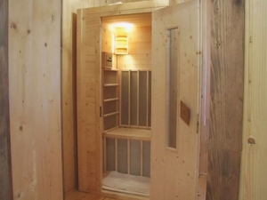 В комнате отдыха можно делать обшивку из сосны и здесь это даже будет приветствоваться. Жарко и влажно тут не бывает, а сосна наполнит помещение приятным хвойным запахом. Кроме того, она выделяет большое количество финоцидов, благотворно сказывающихся на состоянии человека и способствующих его охране от разного рода инфекций.