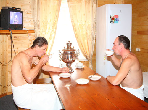 После отделки комнаты приступают к изготовлению или покупки мебели. В этом помещении не обойтись без хорошего, устойчивого стола, и опытные парильщики, в один голос, утверждают, что он не должен быть слишком маленьким. Дело в том, что на нем должны разместиться самовар или чайник, чашки или бутылки с минеральной водой. Конечно, если бы стол был нужен лишь для чаепития, он сгодился бы и небольших размеров, но женщинам обязательно понадобится место, чтобы разложить все свои крема, бальзамы и другие косметические средства.