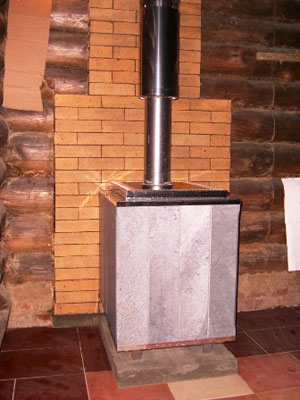 на готовый фундамент нужно проложить пару рядов огнеупорного кирпича, скреплены которые раствором из глины;