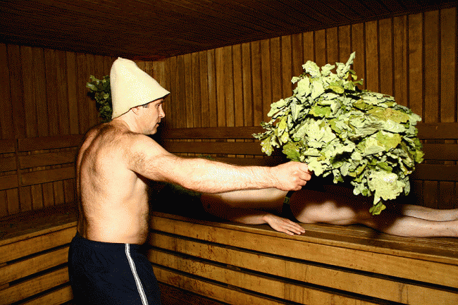 Довольно много факторов оказывают влияние на манеру поведения человека в сауне или бане, на то как он парится. Это и личные предпочтения, и особенности организма человека, и его привычки. Каждый опытный банщик имеет свои определенные правила посещения бани, вырабатываемые, как правило, годами. Существуют и некоторые общие рекомендации посещения бани и сауны, соблюдение которых сможет помочь лучше освоиться новичку и приобрести со временем свой собственный «банный стиль». Алкогольные напитки в бане Распитие спиртных напитков, вопреки расхожему мнению, сводит на нет весь лечебный эффект бани, а также может представлять опасность для людей с болезнями сердечно -сосудистой и центральной нервной системы. Поэтому употреблять спиртное в бане не рекомендуется, однако бокал пива можно себе позволить. Правила поведения в бане Прежде всего, придя в баню, необходимо принять душ и насухо вытереться полотенцем. Не рекомендуется: — мыться с мылом, т.к. обезжиренная кожа более чувствительна к высокой температуре. — мочить волосы на голове, во избежание перегрева следует надеть специальную шапочку или замотать голову полотенцем. Время, проводимое в парилке Считается, что первый заход в парилку должен составлять по времени не более 3-4 минут. После чего, необходимо отдохнуть в течение 15-20 минут. Затем можно продолжить париться. Общее время пребывания в бане (русской, финской сауне) не должно превышать трех часов. По мере обретения опыта в банных процедурах, приходит понимание того, сколько времени именно вам нужно находиться в парилке. Для того, чтобы хорошенько пропотеть, каждому из нас необходим свой срок, который будет зависеть от индивидуальных механизмов потоотделения и терморегуляции. Правила поведения в парной Самым удобным и эффективным положением тела в парилке является строго горизонтальное положение, причем ноги должны находиться или на одном уровне с головой, или чуть выше. Таким образом, не возникнет большого температурного перепада верхней и нижней частей тела. Очень важно, находясь в сауне или парной, следить за дыханием. Дышать нужно с помощью носа. Дыхательные пути может обжечь сухой горячий воздух, проходящий напрямую — при прохождении через нос, воздух успевает достаточно остыть и насыщается водяными парами. По выходу из парной, ни в коем случае не делайте резких движений, гораздо лучше медленно сесть на полке, или прилечь, можно немного поразмяться перед этим. Таким образом, лучше восстанавливается кровообращение. Для того, чтобы восстановить утраченную влагу, необходимо медленно, небольшими порциями пить жидкость, например зеленый чай или минеральную воду без газов. После заключительного времяпрепровождения в парной, необходимо принять душ, и можно, наконец-то, намочить и вымыть голову. И напоследок, главное, чему нужно научиться при посещении бани или сауны, будь она русской, финской, или турецкой, – это полное погружение в атмосферу спокойствия и умиротворения и расслабление всего организма.