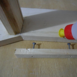 3. Затем рейки распиливают, примеривают, промазывают монтажным клеем и стягивают саморезами.