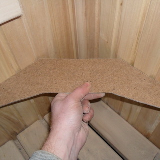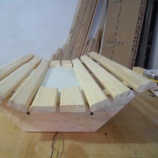 Перед тем как сделать освещение в бане, из ДВП делают шаблоны основных деталей. По шаблону для каркаса светильника из липовой древесины строгают вертикальные рейки с закругленными краями: 4 штуки размерами 750x35x15 см, 8 штук размерами 750x40x15 см, 4 штуки размерами 750x45x15 см и 1 штуку — 550 -50 -20 см (она потребуется при обустройстве паза для стекла).