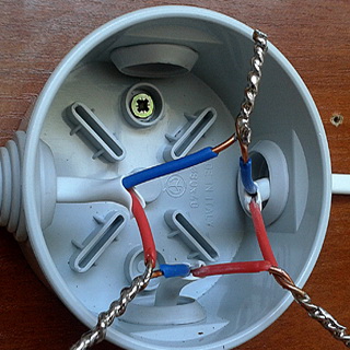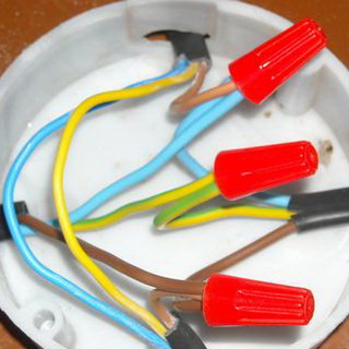 2. Провода соединяют между собой, используя клеммы, колпачки, клеммные коробки, сжимы или же ручную скрутку. Дополнительно провода обматывают изолентой, скручивают, прячут в коробку, закрывают ее крышкой и помещают в специально сделанное для нее углубление. Далее фиксируют в нем, используя гипс или штукатурку.