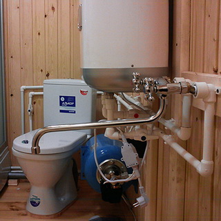 Основные части системы водоснабжения в бане — бак, электронагреватель, насосная станция, душ, — должны соединяться с магистралью при помощи гибких проводов. Это позволит облегчить монтаж, упростит уход за баком, который регулярно моют с помощью водонагревателя, а также за насосной станцией, которую необходимо чистить ежегодно.