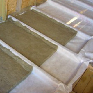 Поверх древесного щита помещают пароизоляционный слой и утеплитель из минеральной ваты. Если используется сыпучий утеплитель, устраивают специальные оградительные бортики, проходящие по всему периметру чердака.