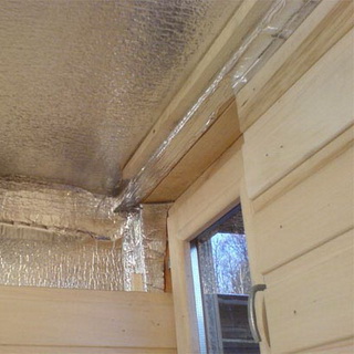 Поскольку горячий пар в бане поднимается к потолку, необходимо предусмотреть защиту его утечки сквозь крышу: потолок зашивают досками, а сверху выполняют пароизоляцию вощеной бумагой, алюминиевой фольгой, пропитанным олифой плотным картоном. На пароизоляцию укладывают слой мягкой глины, затем приступают к утеплению конструкции при помощи керамзита, опилок, минерального утеплителя, песка или земли. Слой данного материала толщиной — не менее 15 см. Особенно тщательно следует утеплить дымовую трубу.