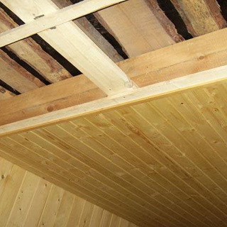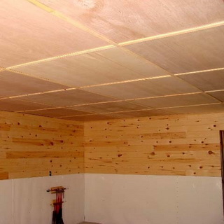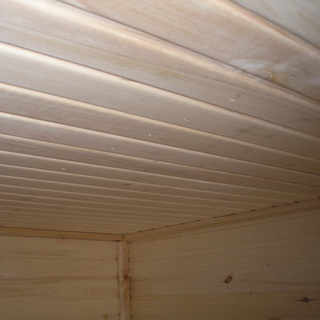 Если каркас щитов выполнен из брусков сечением не менее 50x100 мм, их монтируют без использования потолочных балок, поскольку они благодаря своему прочному каркасу способны играть роль потолочного перекрытия без всяких дополнительных опор. Для сооружения в бане потолка потребуется 0,4 м3 обрезной доски или вагонки толщиной 22 мм или 38 досок вагонки шириной 120 мм.