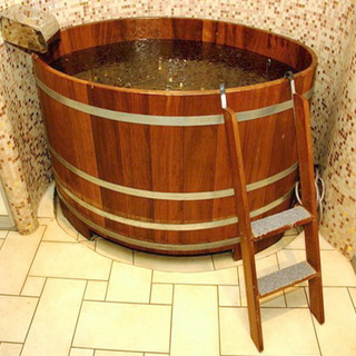 В бане нужно иметь и бак для холодной воды. Он может быть не только металлическим, но и пластиковым. Современная промышленность выпускает такие емкости разнообразных конфигураций и объемов. Но самым лучшим вариантом будет приобретение емкости из дерева. Такая бочка или кадушка будет служить украшением русской бани.