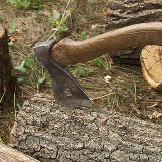 Для обработки древесины потребуется тупоугловой топор (топорище должно находиться под углом в 100° относительно рукоятки).