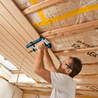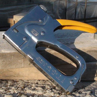Строительный степлер позволяет скреплять с помощью скоб тонкослойные поверхности, поэтому понадобится при обшивке внутренних помещений бани.
