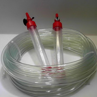 Водный, или гидроуровень, имеет две колбы с метками, соединяющиеся между собой шлангом разной длины. Он работает по принципу сообщающихся сосудов.