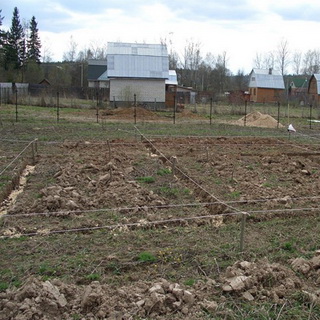 2. Натянув на забитые колышки веревку, вы получите оси бани. Отступив от них в обе стороны на половину расчетной толщины фундамента, вы найдете положение ее стенок. Все внутренние стены и перегородки, опирающиеся на фундамент, привязываются к основному контуру бани.