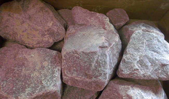 Лучше всего использовать при строительстве печки для бани красный кварцит.