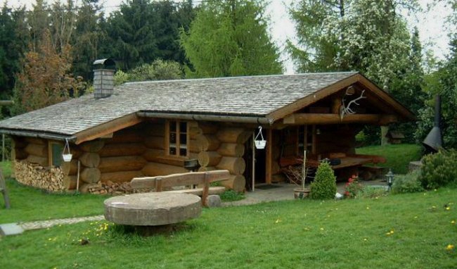 Деревянная баня сама по себе красива. Но можно сделать ее еще более нарядной и стильной, «состарив» ее фасад и украсив его толстыми кручеными веревками. Тогда ваша баня станет уникальной, дизайнерской постройкой. Незамеченной она не останется! Это можно сделать так: