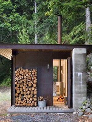 Стену бани просто декорировать поленницей из дров, в которой при кладке, при желании можно специально оставить «ниши». Вариант простой, но один из самых эффектных!
