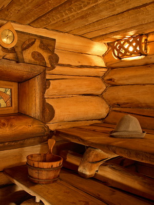 Cодержание Внутреннее оформление бани и предбанника Оформление бани снаружи Оформление бани своими руками – дело нехлопотное, особенно если идет речь о внутренних работах. Здесь можно проявить свою фантазию и добавить к традиционным вариантам «в русском стиле» свои, авторские ноу-хау. Ведь так приятно париться в помещении, к дизайну которого вы подошли с душой! Вооружившись идеями, представленными выше на фото оформления бани внутри, и изучив советы на этой странице, можно приступать к работе! Внутреннее оформление бани и предбанника Баня как ландшафтный объект допускает множество вариантов декорирования. Внутреннее оформление бани и предбанника должно гармонировать друг с другом, чтобы выдерживался единый стиль. Деревянные таблички с рисунками и надписями на банную тему украсят внутреннюю обстановку бани. Оформление бани внутри начинается с предбанника и комнаты отдыха: подберите для этих помещений красивую мебель из текстурированной древесины. Если вы любите мастерить, такую мебель несложно сделать самостоятельно. Окно в предбаннике отделайте резными наличниками. Точно так же сделайте раму для зеркала. Устройте в предбаннике угловые полочки для деревянных изделий. В предбаннике обязательно должны быть специальные влагостойкие розетки. Устройте красивый уголок для чаепития: с самоваром, нарядной керамикой, баночками для чая и трав. Все влагостойкие светильники не представляют собой, конечно, произведений искусства, вид их стандартный. Посмотрите на фото оформления бани: в парилке можно устроить дизайнерский светильник. Для этого просто «загородите» влагостойкий светильник конструкцией из редко расположенных деревянных реек. Оформление бани снаружи Для оформления бани снаружи подойдут «старинные» предметы русского быта, если они есть у вас. Их можно поставить или повесить на стену. Даже старое коромысло здесь будет выглядеть колоритно. Красиво будет выглядеть баня, если поставить рядом с ней скамеечку и несколько контейнеров с простыми, но яркими летниками: календулой, настурцией, астрами, циннией. Особенно будут хороши «тематические» контейнеры в виде простых деревянных ящиков или устроенные из протекающих банных шаек, деревянных ведер. Стену бани просто декорировать поленницей из дров, в которой при кладке, при желании можно специально оставить «ниши». Вариант простой, но один из самых эффектных! Деревянная баня сама по себе красива. Но можно сделать ее еще более нарядной и стильной, «состарив» ее фасад и украсив его толстыми кручеными веревками. Тогда ваша баня станет уникальной, дизайнерской постройкой. Незамеченной она не останется! Это можно сделать так: 1. Покройте фасад бани темной морилкой. 2. Пройдитесь по всей окрашенной поверхности шлифовальным кругом. Древесина, в зависимости от своей поверхности, отшлифуется, выявляя структуру дерева более светлым цветом. 3. Щели между бревнами проложите толстой веревкой, наклеивая ее с помощью клеевого пистолета. 4. В некоторых местах дополнительно укрепите веревку маленькими гвоздиками.