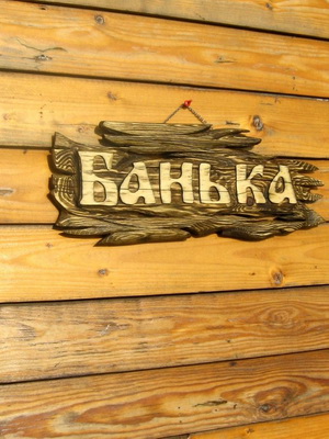 Для оформления бани снаружи подойдут «старинные» предметы русского быта, если они есть у вас. Их можно поставить или повесить на стену. Даже старое коромысло здесь будет выглядеть колоритно.