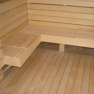 Пол в парной должен быть на 15—20 см выше, чем в иных помещениях: в парилке будет теплее, да и сквозняков станет гораздо меньше. Его лучше выложить плиткой — она не боится влаги и перепадов температур, легко моется. Поверх плитки кладут решетку, изготовленную из липы, которая не гниет и будет служить очень долго.