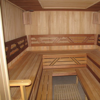 А вот сосну при обшивке бани внутри вагонкой в парной не используют. При высоких температурах она выделяет смолу. Смолистые соединения в разгоряченной парной — весьма опасные канцерогены. Но для обшивки потолка использовать сосну можно, выбирая исключительно качественный материал без сучков (сорта А): тогда даже при температуре около 85 °С потолок останется чистым, без смолы.