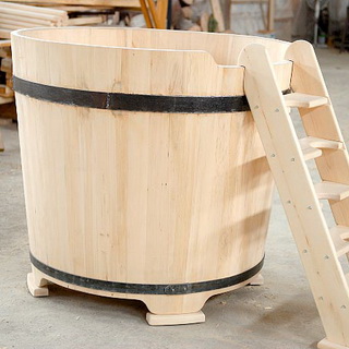В бане нужно иметь и бак для холодной воды. Он может быть не только металлическим, но и пластиковым. Современная промышленность выпускает такие емкости разнообразных конфигураций и объемов. Но самым лучшим вариантом будет приобретение емкости из дерева. Такая бочка или кадушка будет служить украшением русской бани.