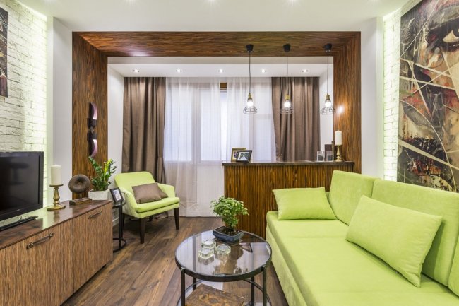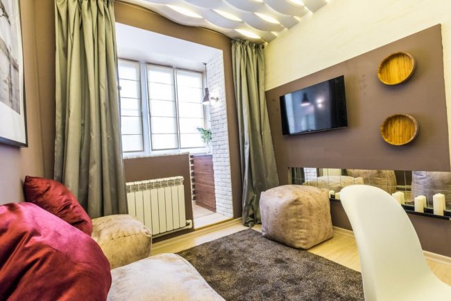 Самый популярный вариант перепланировки. Выход на балкон чаще ведет из зала, поэтому решение увеличить пространство таким способом полностью обосновано. Существует множество вариантов оформления проема. Чтобы две комнаты смотрелись как одно целое, необходимо правильно расположить источники света, выбрать подходящий текстиль на окна.