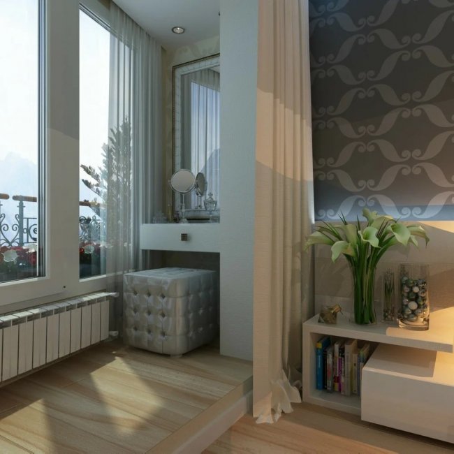 При обустройстве внешней конструкции следует учитывать ее особенности, можно использовать только легкие материалы, не создающие дополнительной нагрузки на балконную плиту. Присоединение балкона к основной жилой площади имеет следующие преимущества: