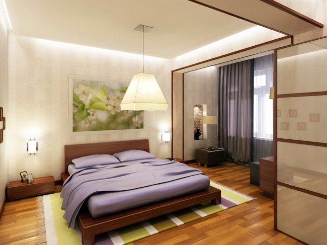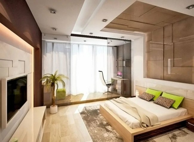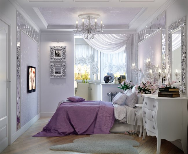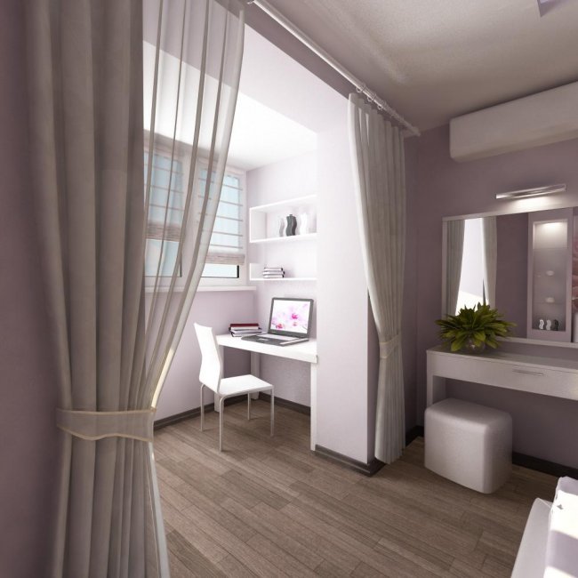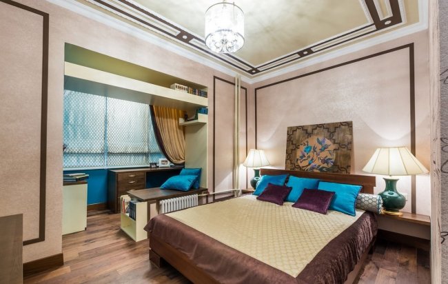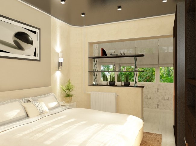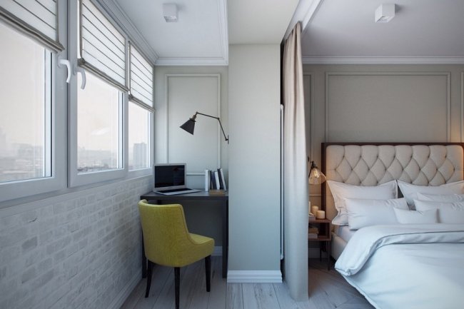 Для проведения оформления совмещенной спальни с балконом существует множество идей. Пространство в комнате для сна и отдыха можно оформить как два независимых помещения, с разной отделкой, стилистическим направлением. Добавленное пространство можно использовать для размещения гардероба, обустройства кабинета.