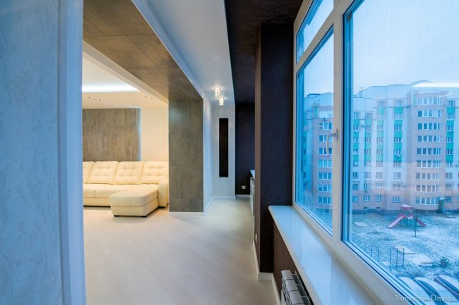 Один из вариантов расширения жилой площади – объединение балкона с комнатой. Для большинства жильцов небольших квартир такая идея является единственным решением. Дополнительные квадратные метры позволят улучшить дизайн, сделать комнату более функциональной. Решившись на перепланировку, следует учесть некоторые инженерные и юридические моменты. Результат обустройства собственного жилья не должен мешать соседям. Любые изменения, присоединения, снос перегородок в панельном или кирпичном доме требуют согласования с БТИ. Содержание Преимущества и недостатки объединения Нюансы объединения в панельном и кирпичном домах Требования к совмещению Как узаконить переделку – согласование в БТИ Этапы объединения Остекление балкона Утепление балкона Разбор проема и выравнивание пола Куда деть батарею Идеи и варианты зонирования для объединенного пространства Гостиная-балкон Кухня-балкон Спальня-балкон Детская-балкон Отделочные материалы и цветовое оформление Особенности освещения совмещенных комнат Заключение Преимущества и недостатки объединения Перепланировка с целью увеличения пространства позволит создать новый современный интерьер. Такой ремонт проводят не только в малогабаритных хрущевках, но и в квартирах улучшенной планировки. В зависимости от этажности и типа постройки провести объединение можно двумя способами: с удалением только окна и дверного проема, полным демонтажем всех элементов вместе с порожком. При обустройстве внешней конструкции следует учитывать ее особенности, можно использовать только легкие материалы, не создающие дополнительной нагрузки на балконную плиту. Присоединение балкона к основной жилой площади имеет следующие преимущества: Повышение уровня комфорта; Увеличение естественного освещения; Оригинальный дизайн; Повышение рыночной стоимости квартиры; Создание уникальной планировки. К недостаткам присоединения лоджии или балкона можно отнести необходимость оформлять перепланировку по закону, со сбором и подписанием множества бумаг. Потребуется понести значительные материальные затраты на остекление, утепление, освещение и прочее. Также могут возникнуть трудности при сносе перегородок, поскольку во многих домах старой постройки подоконная зона монолитная и не разбирается. На балконной плите нельзя размещать тяжелую мебель, габаритную бытовую технику, создающую вибрации. Нюансы объединения в панельном и кирпичном домах Полный снос подоконника, верхней перемычки можно производить только в кирпичных, блочных домах. В панельных постройках фасад является несущей стеной, нарушение ее целостности очень опасно. Если разрешение на полный демонтаж все же получено, необходимо поставить минимум двойной стеклопакет и позаботиться о дополнительном утеплении. Переносить батарею в зону бывшего балкона нельзя. Такие действия могут нарушить тепловой контур всего дома. При демонтаже подоконника элемент отопления можно отодвинуть на соседнюю стену, максимально близко к проему. При перепланировке многие хотят сделать один уровень пола, но получить разрешение на снос порожка практически невозможно. В кирпичных домах он поддерживает балконную плиту и является частью конструкции. Если порог убрать в постройке из панельных плит, то она утратит жесткость, а перекрытия будут промерза