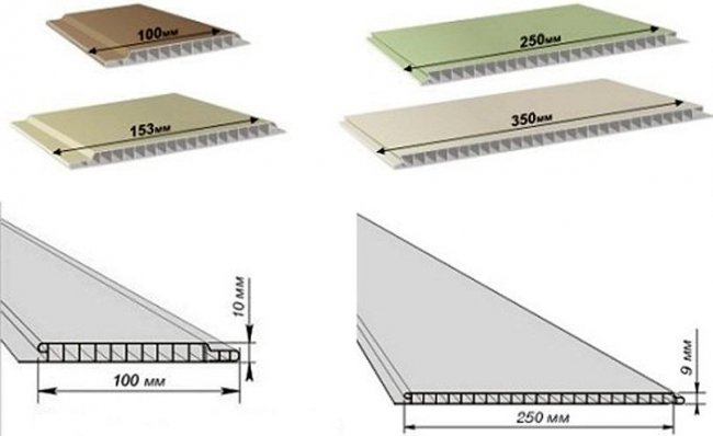 Длина панелей тоже может быть разной, но чаще всего встречаются варианты 2,7 м, 3,5 м, 5,95 м. Ширина варьируется в пределах 0,1-0,5 м.