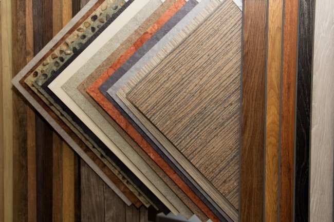 Ламинированные. Поверхность панелей украшают структурным узором. Ламинированный материал обычно достоверно имитирует текстуру дерева или камня.