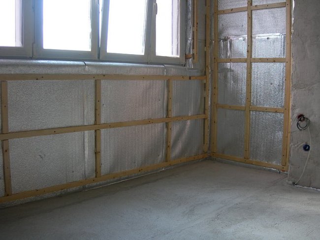 Подготовка стен не займет много времени. Если они неровные, то обрешетка поможет исправить этот недостаток, и финишная отделка не выдаст этот страшный секрет. С наличием щелей придется справляться самостоятельно. Сначала нужно тщательно исследовать поверхность по всему периметру балкона. Если трещинки и щели все же нашлись, то их тщательно зачищают, а после замазывают шпатлевкой. Когда состав высохнет, стену покрывают слоем грунтовки. Лучше использовать средства с антисептическим и герметизирующим эффектом. Они предотвратят отсыревание стены, появление грибка и плесени, «утечку» тепла. Грунтовку можно нанести в два слоя для большей надежности. После высыхания состава (лучше оставить балкон в покое на сутки) приступают к монтажу обрешетки.