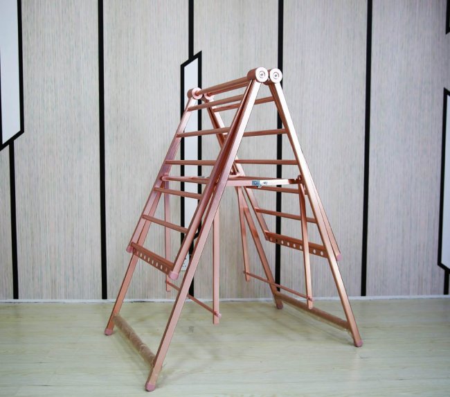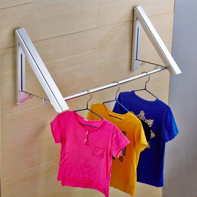 Модели из алюминия относятся к одним из самых доступных и популярных. Они представляют собой алюминиевую легкую конструкцию, окрашенную износостойкой краской. Обычно такие сушилки являются раскладными и занимают довольно много места. Но при этом они позволяют сразу просушивать большое количество вещей. К небольшим алюминиевым сушилкам относятся подвесные модели (фиксируются на раме открытого балконного окна или крепятся непосредственно к стене). Довольно просты в эксплуатации, но имеют определенные ограничения по весу вещей, которые будут сушиться. Таким образом, если нижнее белье и носочно-чулочные изделия на алюминиевой сушилке можно разместить в любом количестве, то тяжелых вещей (мокрые джинсы, зимние свитера) на ней рекомендуется раскладывать в количестве 2-3 единицы. В противном случае конструкция может деформироваться.