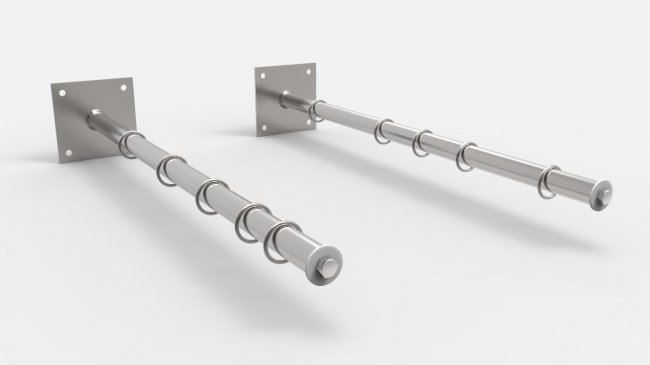 Стержневые (без регулировки). Имеют вид пары кронштейнов-уголков, между которыми расположены многочисленные стержни. Такие модели занимают мало места, но не складываются. Поэтому в большей мере подойдут для установки на просторных балконах.