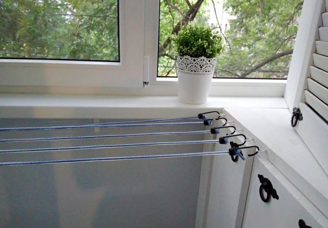 Размеры. Практичность выбранной модели зависит от ее параметров. Для вытянутого балкона, оснащенного несколькими окнами, оптимально подойдет модель с небольшим количеством бельевых веревок и значительной длиной. Для маленьких балконов лучше подбирать изделия с незначительной длиной, но большим количеством веревок и сдвижным механизмом.