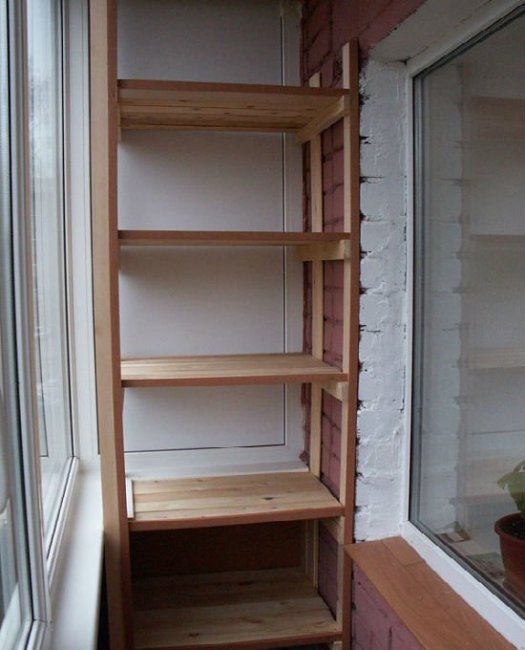 Если содержимое не обязательно прятать за глухими дверцами, вполне можно от них отказаться. Это решение сократит ваши траты и сделает доступ к вещам удобным и оперативным. Стеллаж подойдет для цветов, для рассады – ведь им просто необходимы солнечные лучи. На остекленном балконе открытые полки можно заполнить книгами, декоративными аксессуарами, наборами для рукоделия. Или спроектировать стеллаж таким образом, чтобы одна из полок превратилась в рабочий стол или удобный мини-диванчик.