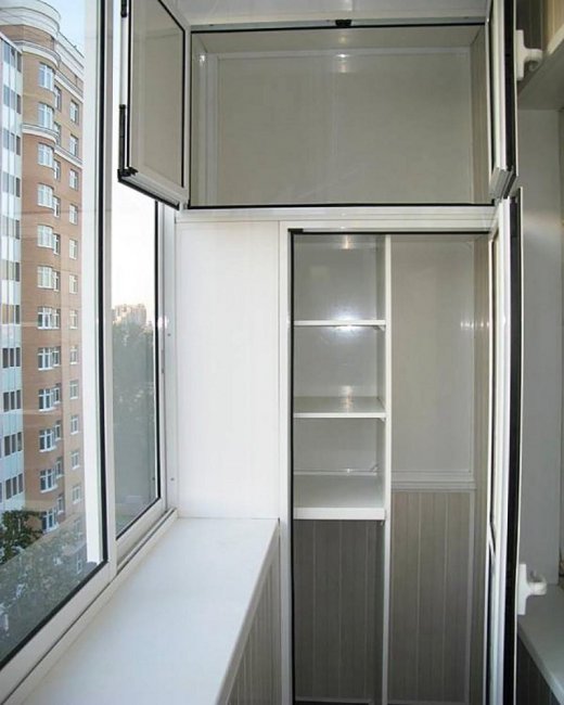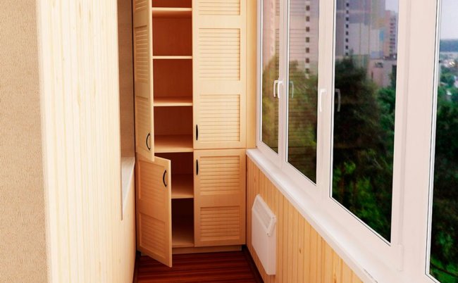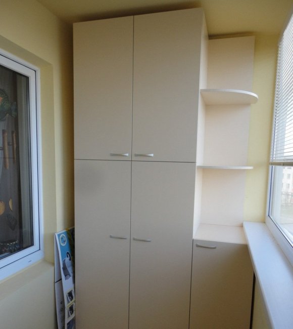 Проблема захламленного балкона знакома многим. Почему мы с таким трудом расстаемся со старыми вещами? Дело в том, что теоретически абсолютно любой предмет может когда-нибудь пригодиться. К сожалению, чаще всего только теоретически. Мы продолжаем хранить и перекладывать дорогие сердцу вещи – нужные и не очень, полезные и бестолковые. Нажитое честным трудом имущество необходимо где-то хранить. Вот оно и копится на балконах, где расставлено порой в хаотичном порядке. Завалы из вещей съедают немало пространства. А ведь решить проблему достаточно просто – нужно всего лишь правильно организовать все эти предметы и лучше всего с этой задачей справится шкаф. Содержание Особенности и преимущества Виды и функциональность шкафов Системы открывания дверей – достоинства и недостатки Раздвижные С рольставнями Двери-гармошка Стеллаж – шкаф без дверей Форма и размер шкафа Материалы Пластик Дерево Вагонка МДФ Стилистика и цветовые решения шкафа Где установить шкаф Комплектация и оснащение шкафа Как сделать своими руками Особенности и преимущества Устанавливая шкаф на лоджию, мы по максимуму разгружаем пространство, убираем с глаз все лишнее и чем вместительнее его конструкция, тем лучше. Шкаф можно выполнить в полную высоту и ширину балкона, и в нем будет предостаточно места для оптимальной организации вещей. Мебель изготавливается по индивидуальным размерам и оптимально вписывается в подготовленное пространство. Система хранения, размещенная на лоджии, позволяет: освободить пространство квартиры от громоздкой мебели; эргономично организовать вещи на маленькой площади; не тратиться на дорогой шкаф – простая и безыскусная модель – идеальный вариант для балкона; спрятать необходимые, но редко используемые вещи – коньки, стремянку, новогоднюю елку; превратить захламленную лоджию в стильное и аккуратное помещение. Виды и функциональность шкафов При всем разнообразии шкафов, которые можно разместить на балконе, выделим два основных вида: отдельностоящий – конструкция, которая не привязана к одному месту. При необходимости ее можно передвинуть, развернуть, перевезти с собой на новую квартиру. Это может быть шкаф, который прежде стоял в одной из комнат, или был куплен специально для балкона; встроенный – такой шкаф делается точно по размерам ниши, отведенной для него. Заказать нужно только дверцы, так как стенками, полом и потолком для него будет служить сам балкон. За счет этого существенно уменьшается вес готовой конструкции. Наполнение встроенного шкафа может быть самым разным – разнообразные полочки, корзины, выдвижные ящики. В пространство балкона отлично впишется угловая система хранения. Она позволит задействовать дополнительные, порой столь необходимые сантиметры и при этом не будет выглядеть громоздко. Угловой шкаф «до потолка» поможет рационально использовать пространство и вместит множество вещей. Системы открывания дверей – достоинства и недостатки Варианты дверей для балконных шкафов могут быть самыми разными – от распашных до гармошек. Их выбор зависит от особенностей помещения, конструкции мебели и предпочтений владельца. Раздвижные Раздвижные двери экономят пространство, поскольку при открывании смещаются относительно друг друга. Этот вариант будет просто незаменим в случае, если шкаф размещен за 