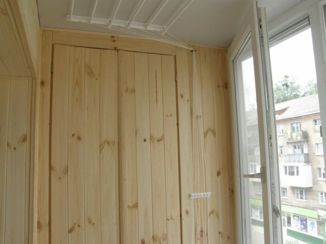 При изготовлении вагонки используется натуральная древесина сосны, ели, дуба, ольхи, а также более дорогих пород – палисандра, красного дерева. Для балконного гардероба прекрасно подойдет вагонка из доступной ценовой категории.