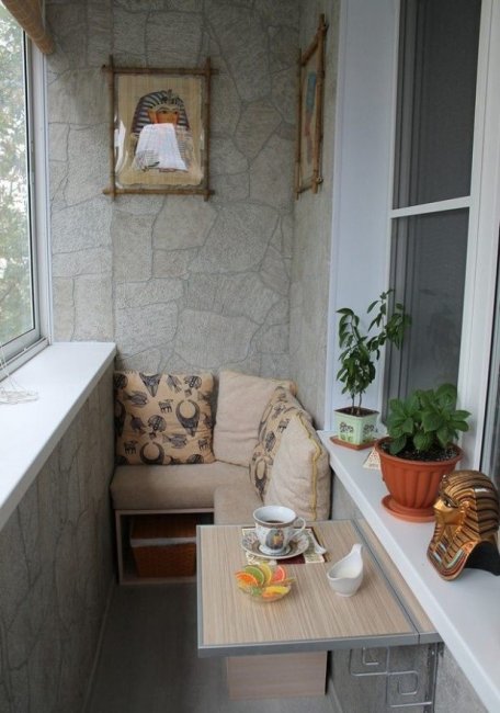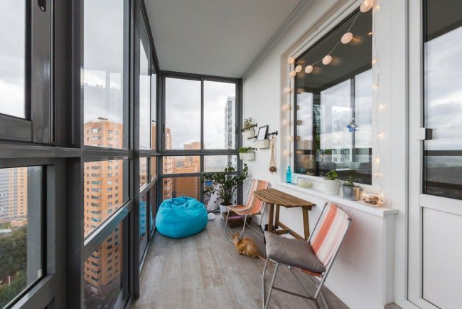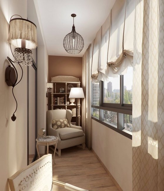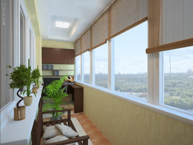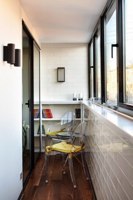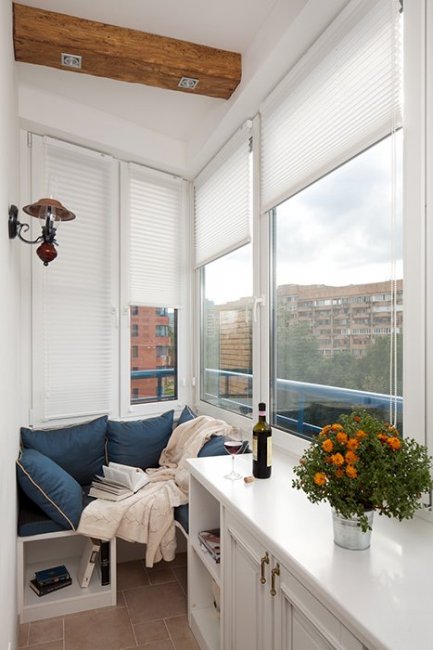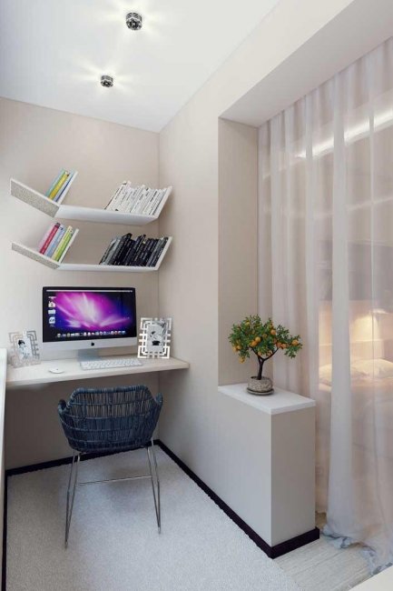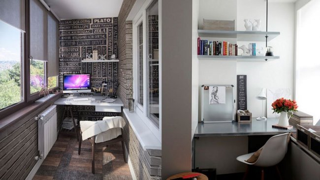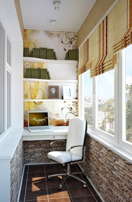 Если балконное пространство не утяжелять громоздкими предметами, заказать встроенную мебель, можно создать полноценную мини-комнату для отдыха и работы.