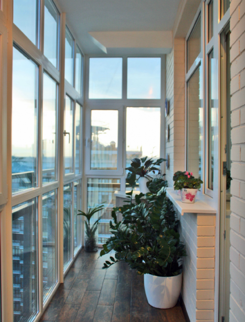 Самый популярный способ остекления – пластиковые окна. Створки удобно открываются-закрываются, профиль не деформируется, не выгорает, не нуждается в подкрашивании. Даже бюджетные стеклопакеты надежно изолируют от шума, холода. Тонкий алюминиевый профиль меньше весит и затемняет помещение. Жесткие и легкие конструкции – оптимальный вариант для расширения пространства за счет выноса балкона, остекления длинных площадок. Деревянные рамы выдерживают большие морозы, сохраняют микроклимат в помещении, удерживают высокие и низкие звуки частоты. Конструкции не деформируются при температурных перепадах, снижают количество поступающего из атмосферы углекислого газа.