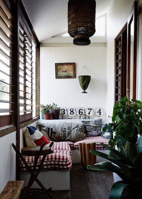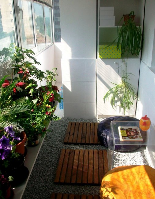 Габариты балконов в панельных домах не дают развернуться, но даже на маленькой узкой площадке в торце помещается кресло, навесные полки, рабочий стол.